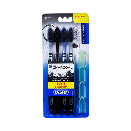 Oral-B Deep Clean+ Cavity Defense With Charcoal Extracts Medium Toothbrush - 4Pcs